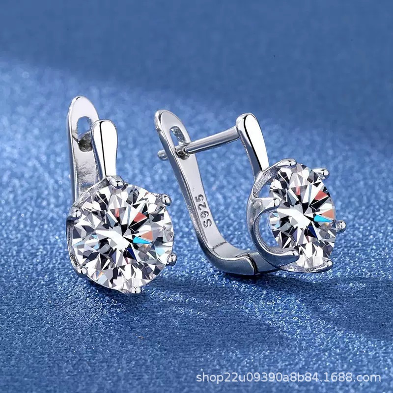 European and American Fashion High-End Full Diamond Princess Round Earrings Earrings for Women Live Broadcast Hot Selling Accessories Women's Silver-Plated Earrings