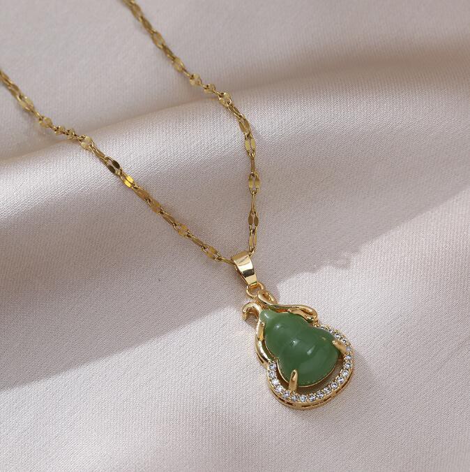 New Simple Retro Style Emerald Small Gourd Pendant Necklace Niche Design Zircon Wholesale Clavicle Chain