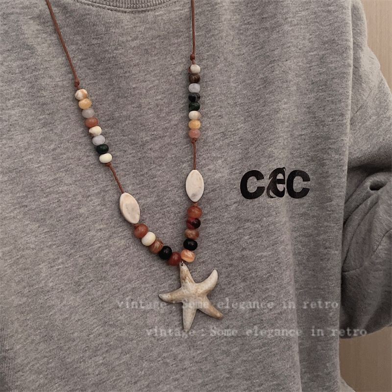 Ethnic Style Starfish Braided Rope Adjustable Long Necklace Women's Ocean Niche High-End Design Long Sweater Chain