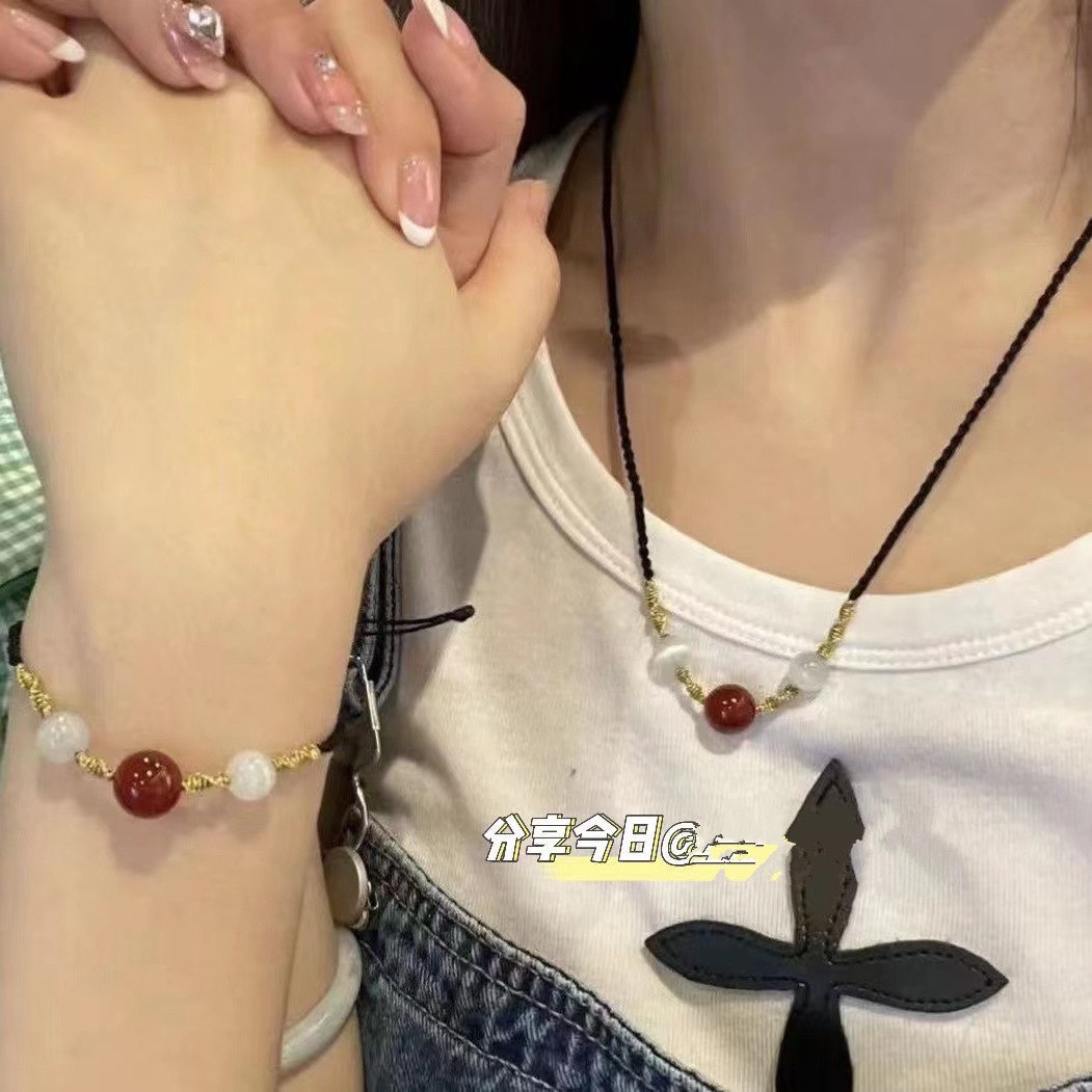 Red Agate Bracelet Woven Acacia Bean Couple Necklace Birthday Year Red Rope Pair of Hand String Red Bean Hand Rope Women's Internet Red