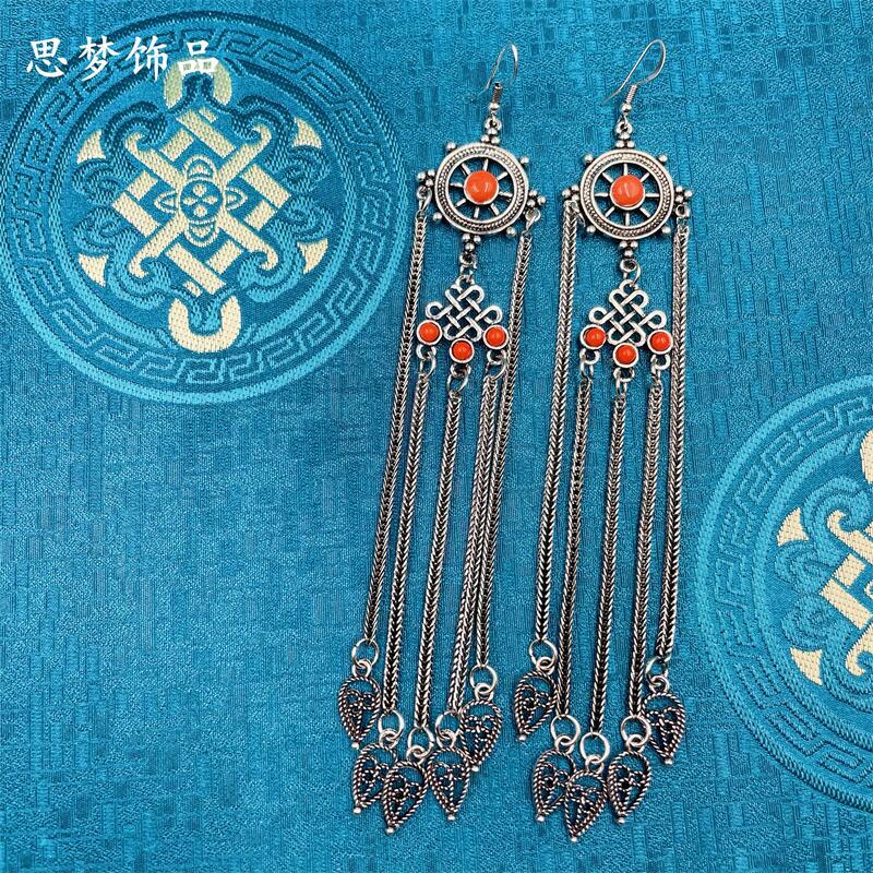 Mongolian Earrings Women's Lengthened Tassel Earrings Metal Earrings Ethnic Style Dance Performance Vintage Accessories E54