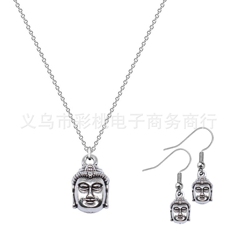 Ancient silver retro ethnic style belief power pendant simple all-match three-dimensional ancient style Buddha head necklace