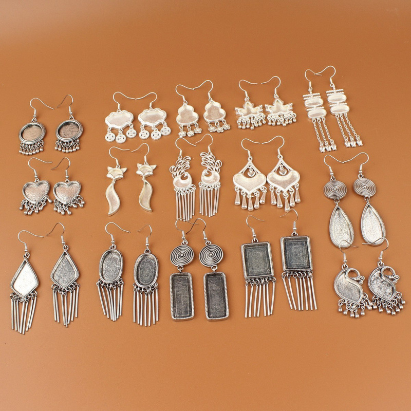 Ethnic Style Handmade Miao Silver DIY Earring Accessories Base Settings Blank Settings for Repairing Pieces Various Tassel Earrings Wholesale