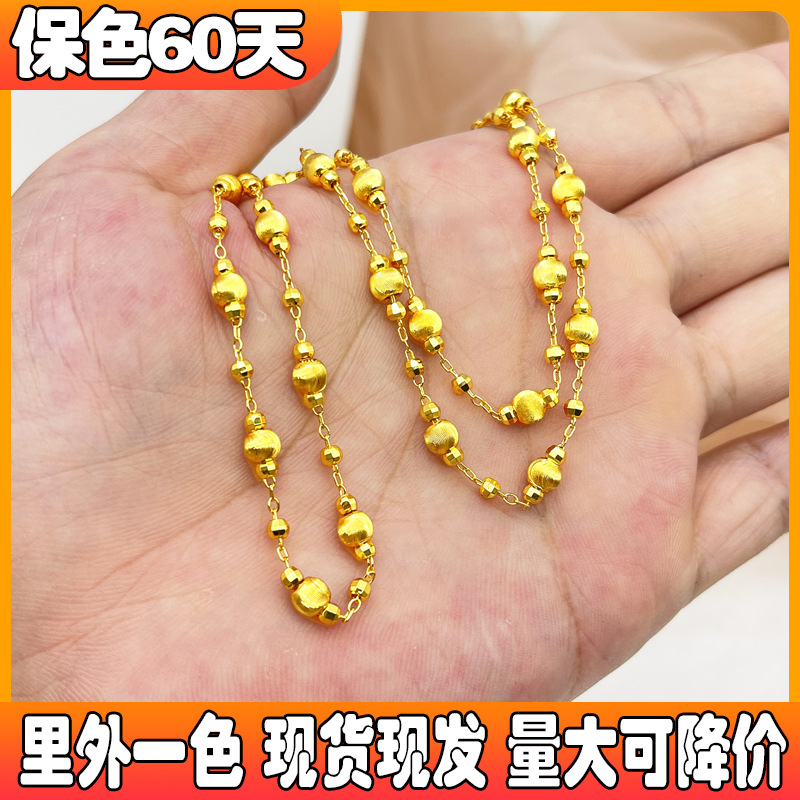 Gold pendant golden chain Box O-shaped snake bone melon seeds water wave ingot necklace gold fine round beads single bare necklace