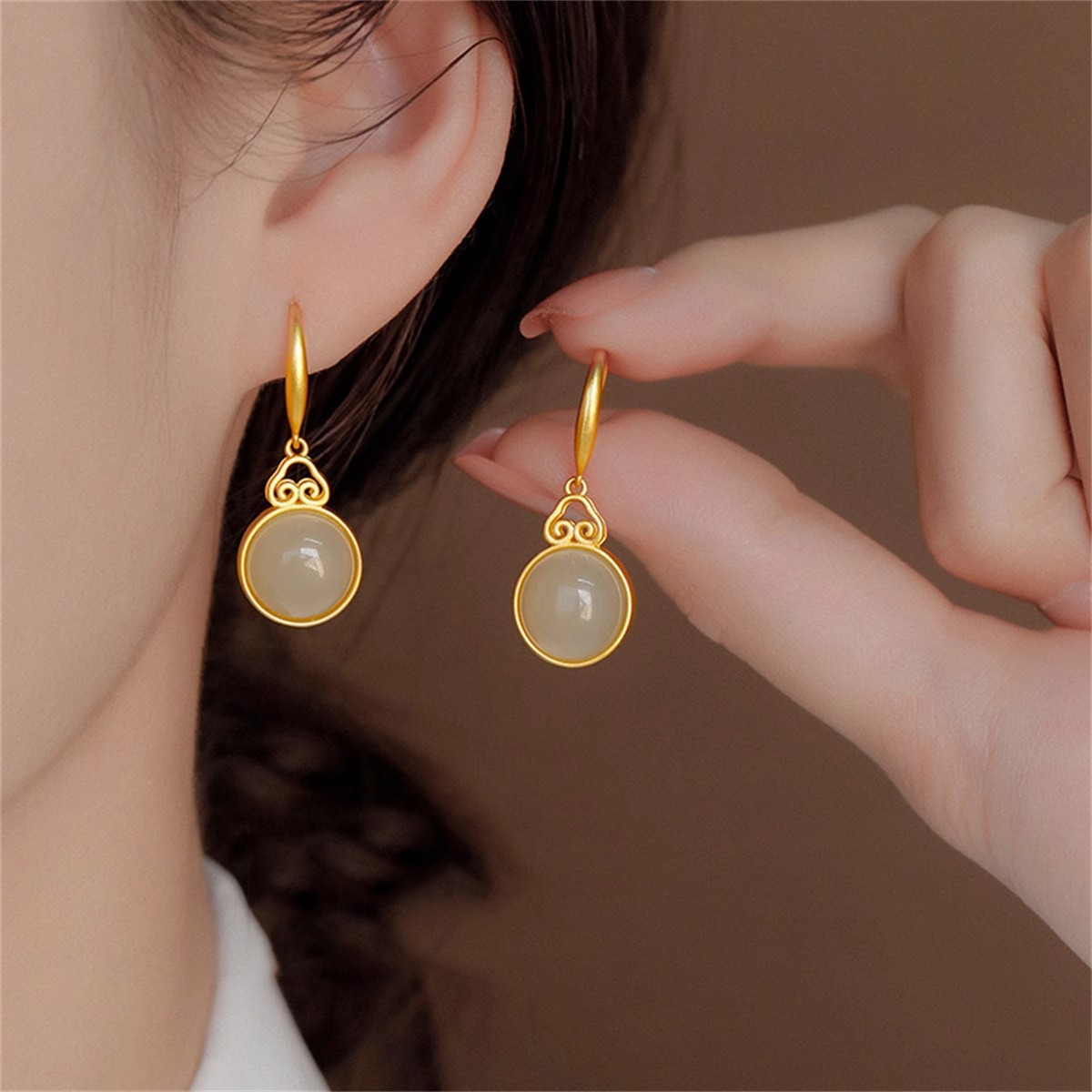New Old French Style Ruyi Earrings New Chinese Style Hanfu Vintage Court Style Ping An Buckle Hetian Jade Earrings Earrings