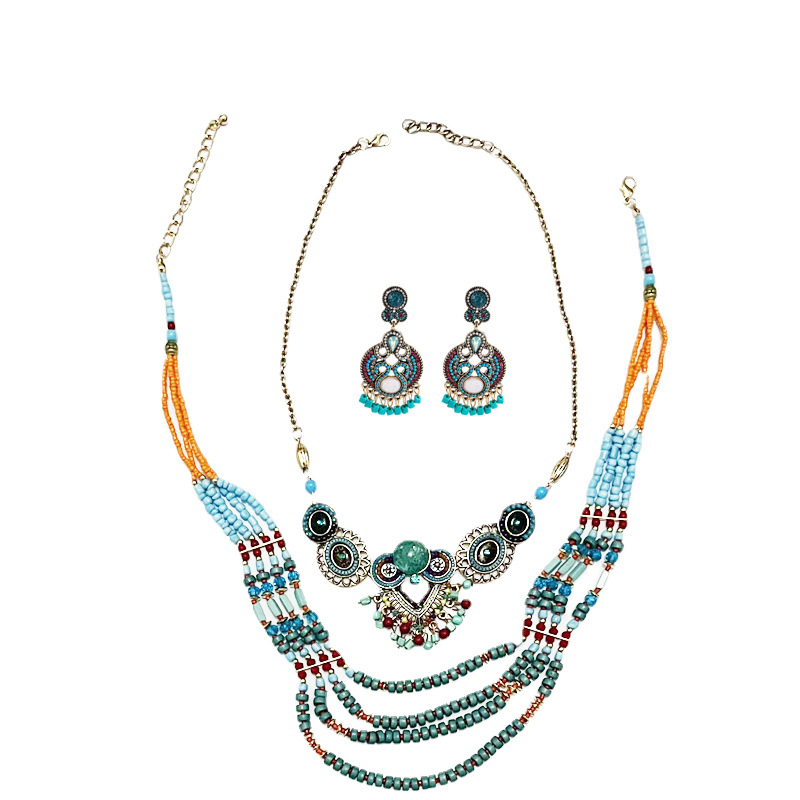 1 set of Bohemian national style beaded necklace earrings suit fashion Joker perfect gift