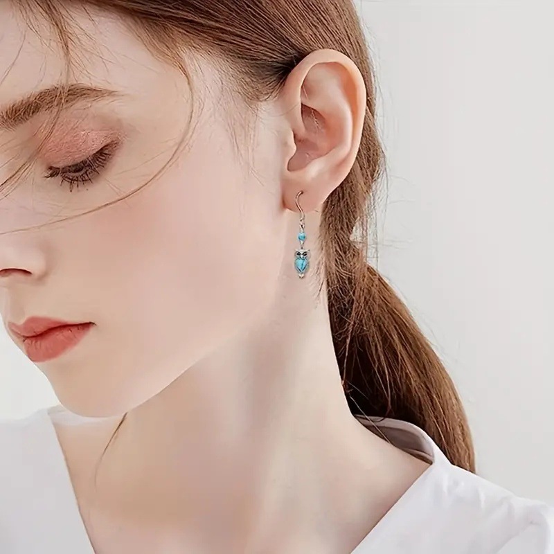 Wangsheng cross-border European and American retro creative Bohemian ethnic turquoise owl pendant earrings wholesale