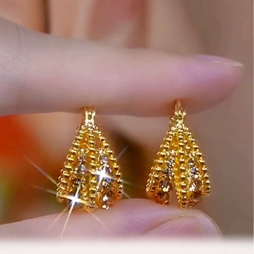 Gold Mesh brown Crystal Drop Ear Buckle Earrings Women's Light Luxury High-end Fashion Atmospheric Elegant Earrings