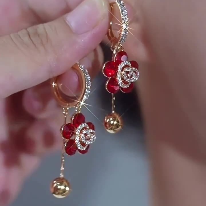 New Fashionable Flower Earrings for Women, Exquisite and Versatile Zircon Earrings, High-End, Light Luxury and Personalized Earrings