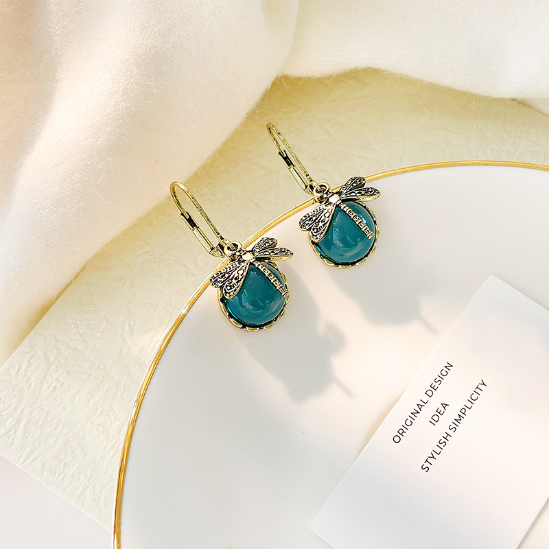 Retro dragonfly pendant earrings 2023 new distressed pattern Moonstone women's fashion design earrings wholesale