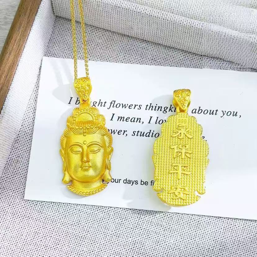 Gold Store Same Style Sand Gold Guanyin Pendant Necklace for Men and Women, Compassionate Buddha and Bodhisattva, Always Safe Necklace Wholesale