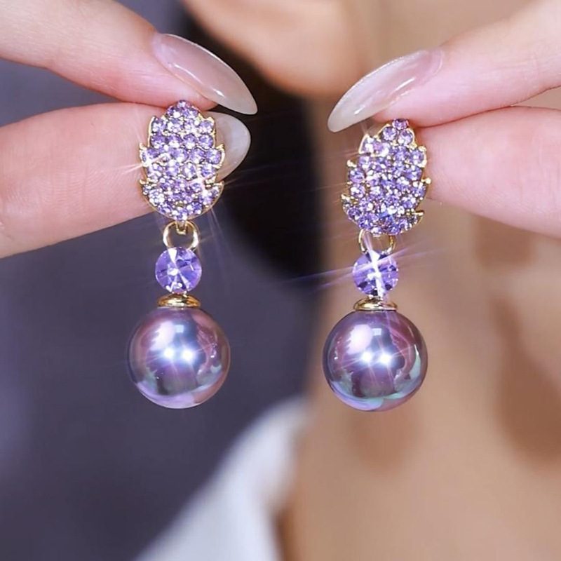 [in stock Now Fat] Purple Leaf Bead Earrings Female Niche Elegant Elegant Elegant Earrings 2025