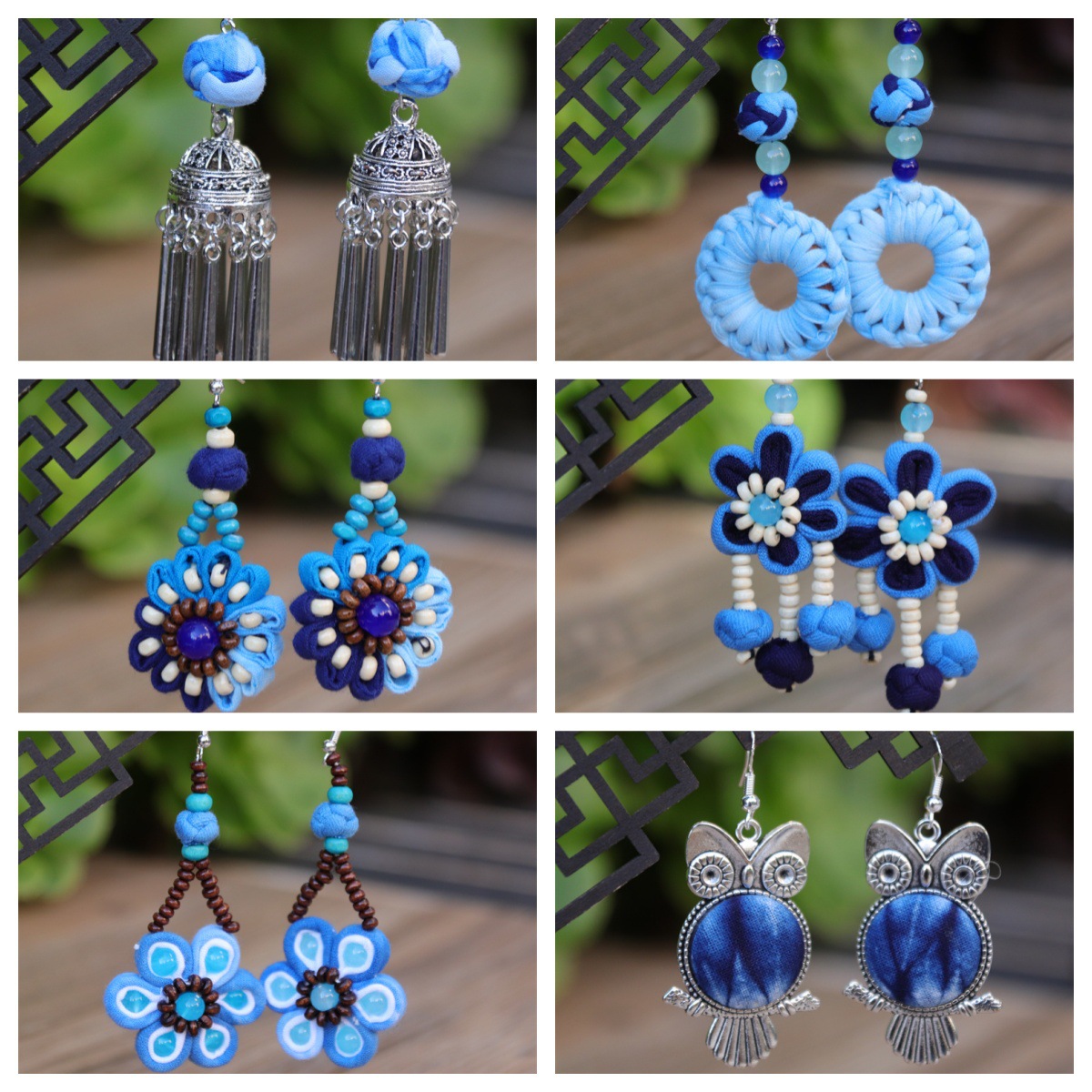 Yunnan Tie-Dye Earrings Going Out to Stand Earrings Yunnan Tie-Dye Ethnic Style Blue Dye Cloth Women's Earrings Travel Accessories