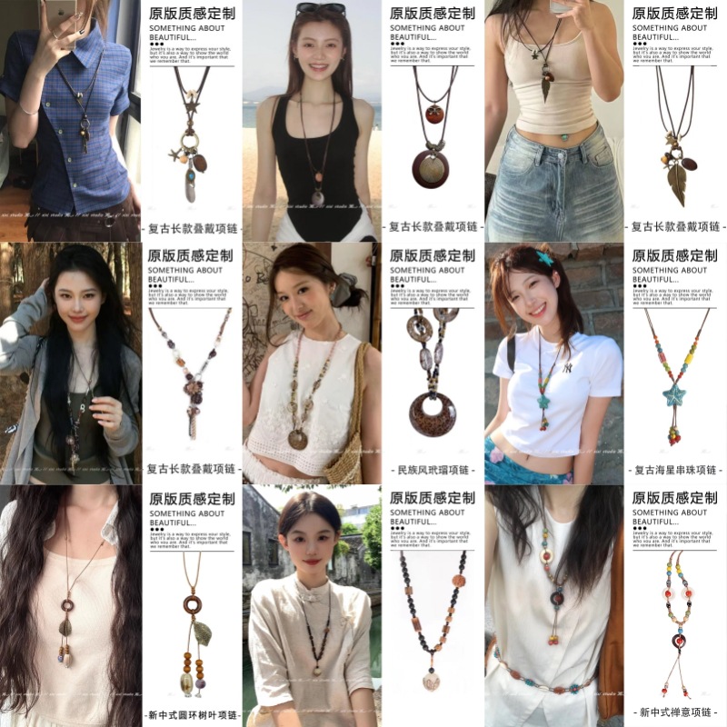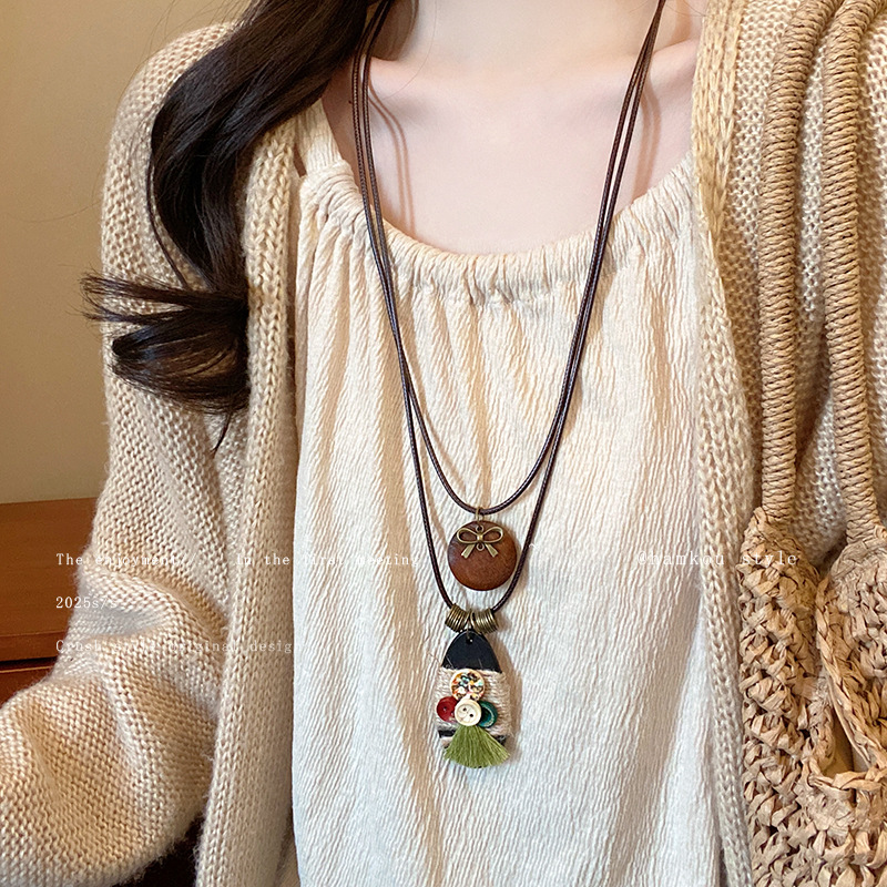 Necklace elegant long retro ethnic style sweater chain internet celebrity TikTok live cotton and linen clothing accessories artistic jewelry