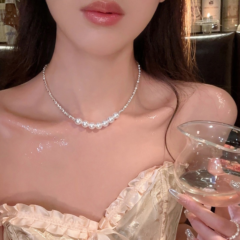 Broken silver pearl necklace for women light luxury niche design sense 2023 new popular high-grade clavicle chain necklace fashion