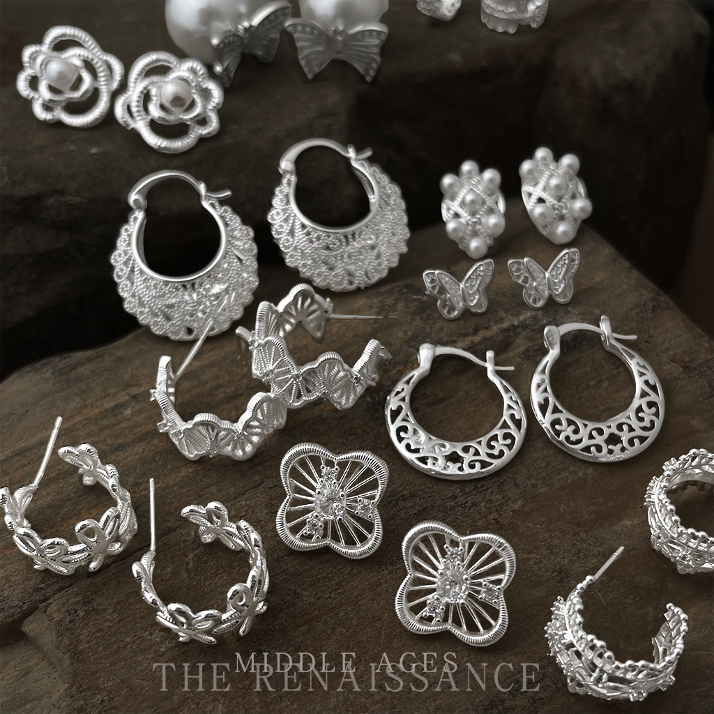 Vintage Mid-Century Style Lace Cut Out Pattern Silver Earrings Collection Retro Ethnic Style Cool Earrings for Women