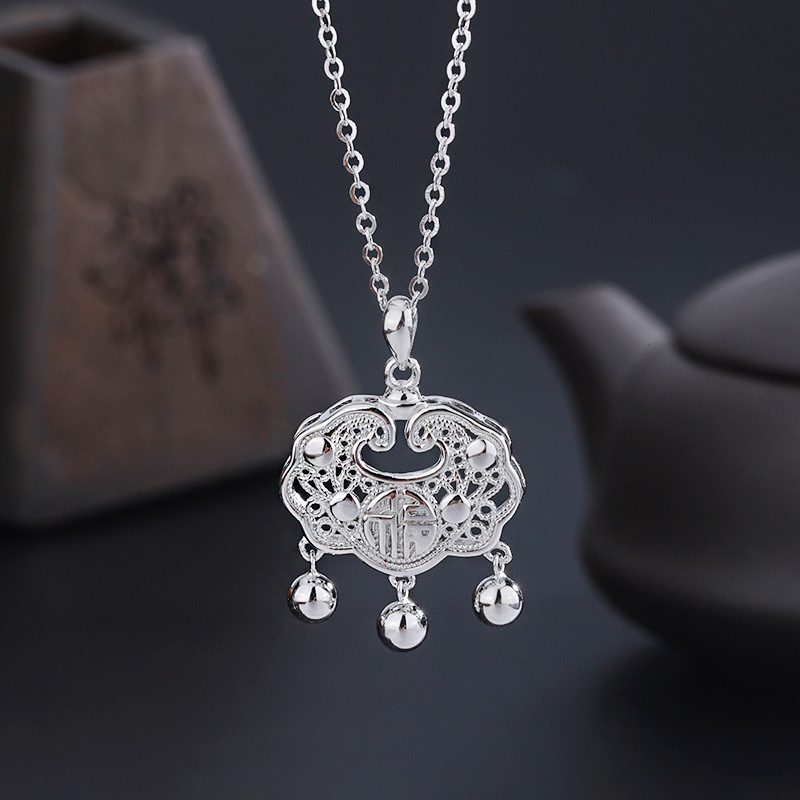 Xiangyun Ruyi Baby Necklace New Chinese Entry Luxury Lucky Brand Collarbone Chain Ins Wind Bell Long Life Lock Pendant