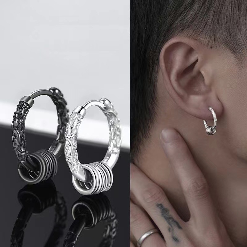 Earrings men's gold-banded stick personality single Chinese style earrings trendy female temperament earrings 2024 new trendy students