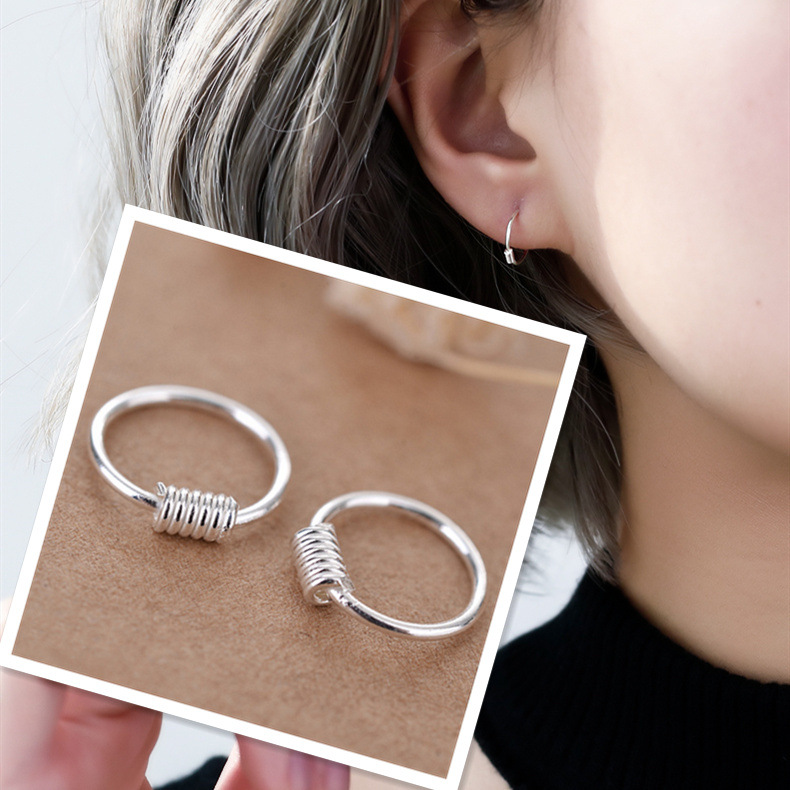 S925 Sterling Silver Jewelry Round Bead Hoop Earrings Korean and Japanese Trendy Earrings Elegant Earrings Niche Design Student Ear Studs Exquisite