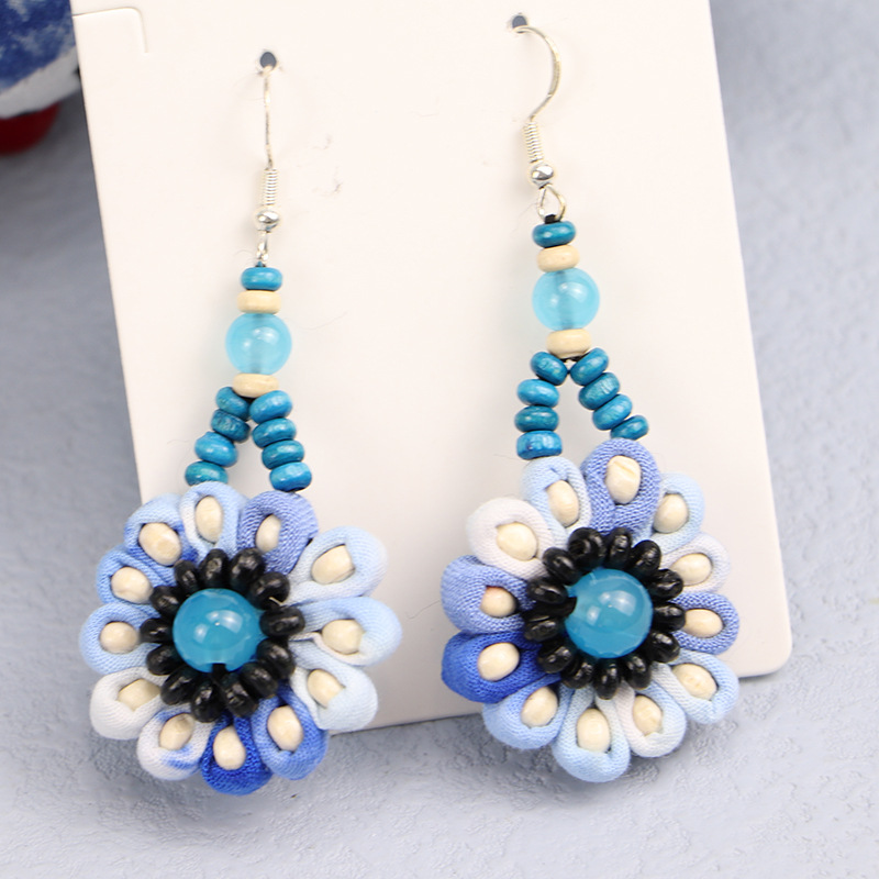 Wholesale Yunnan Fabric Earrings Tie-Dye Blue Earrings Earrings Ethnic Style Disc Buckle Flower Blue Earrings Plant Earrings
