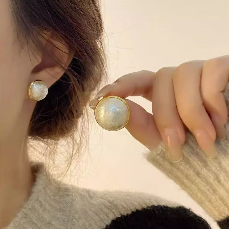 New French-Style Gold-Edged Cotton Bun Bead Earrings for Women, Light Luxury, High-End, Versatile, Elegant Ear Cuffs and Earrings
