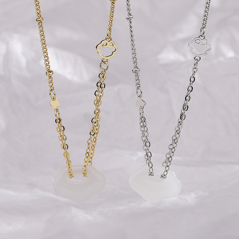 White Chalcedony Cloud Pattern Clavicle Chain National Trend Retro Hanfu Accessory Pendant Hetian Jade Peace Lock Necklace for Women