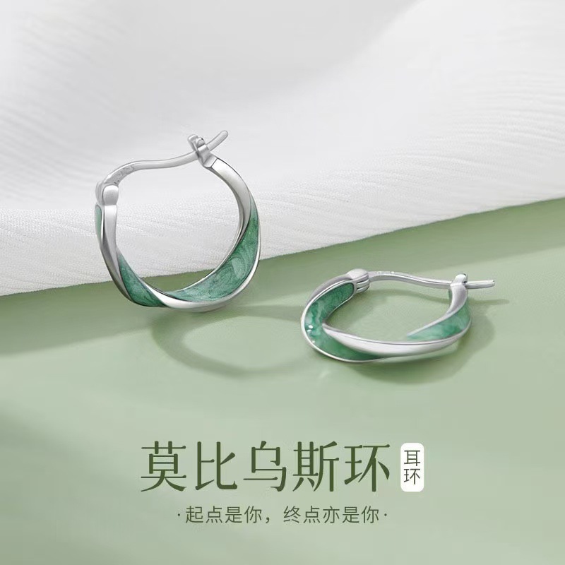 Mobius Ring 999 Sterling Silver Earrings Women's Earrings New Niche High-end Earrings Birthday Gift for Girlfriend