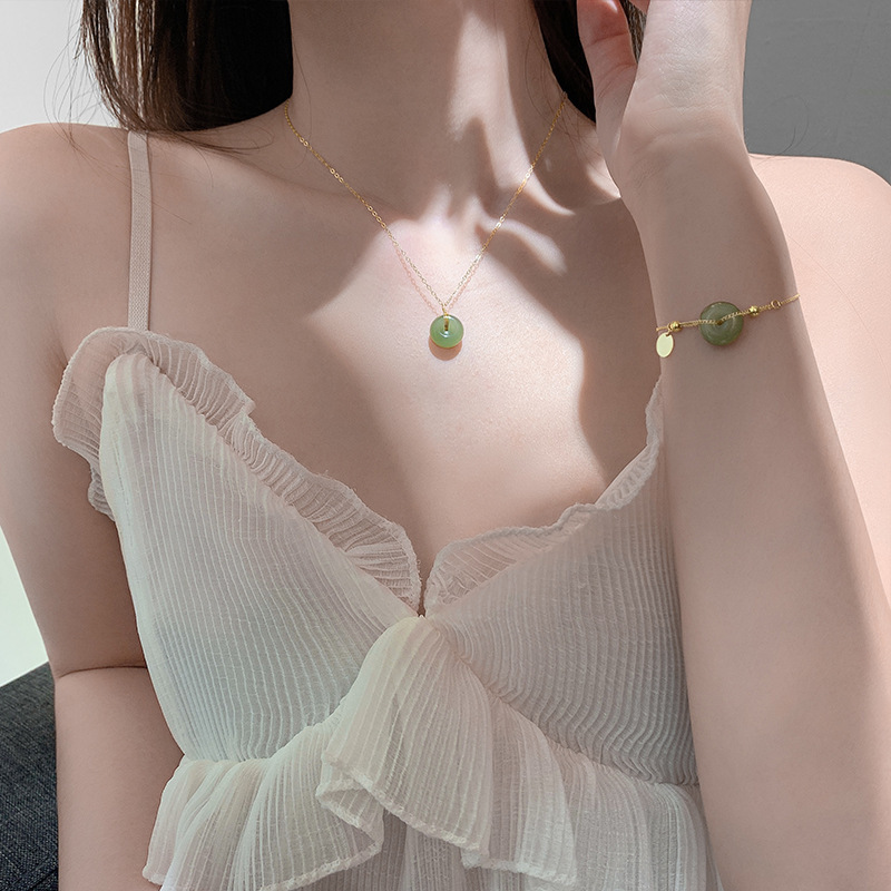 Imitation Hetian Jade Safety Buckle Necklace for Women, Simple and Luxurious Niche Design, Internet Celebrity Pendant Trend 2022 New Model
