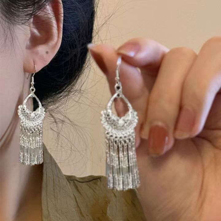 Imitation Silver Miao Village Style Earrings Bohemia Long Leaf Tassel Minority Miao Village Style Earrings Earrings Women