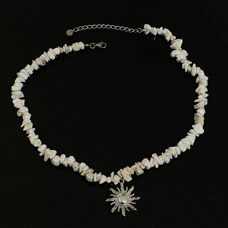 Cross-Border Retro Ethnic Style Sun Necklace Women's High-End Sweater Chain Niche Antique Pendant Beaded Gravel Clavicle Chain