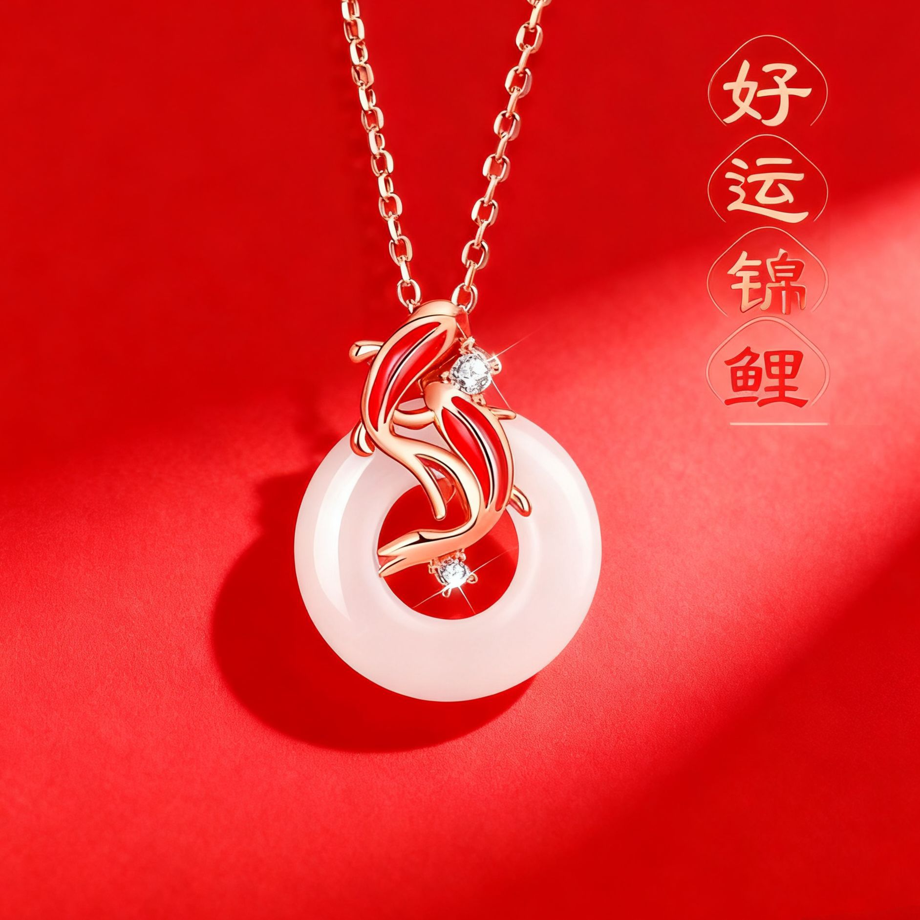 Hetian Jade Koi Necklace for Women, Light Luxury High-End Design with Peace Buckle Pendant, Gift for Mom or Friends