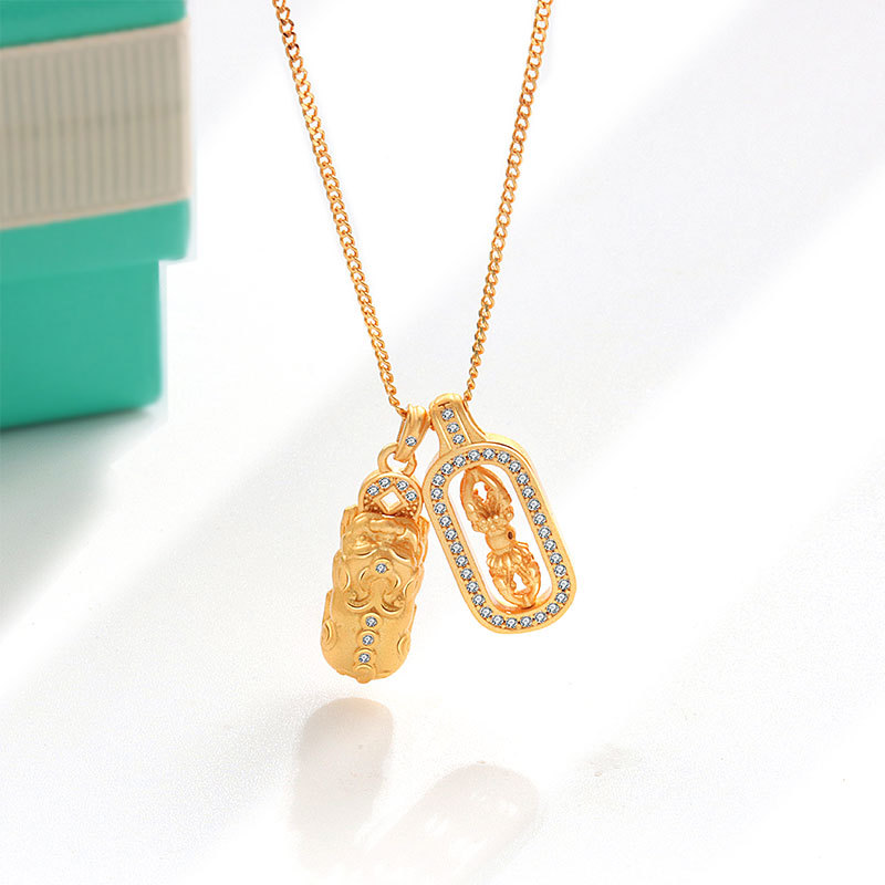 [Same Style as Wei Xue] Pixiu Vajra Necklace for Men and Women, Sand Gold, High Color Retention, Magic Pestle, Full Diamond Pendant Wholesale