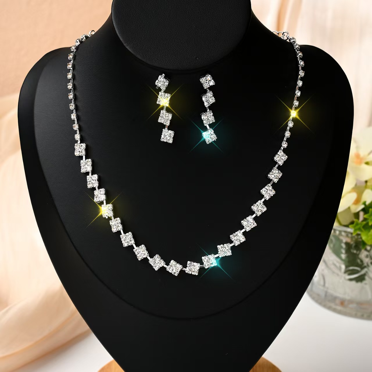 Cross-Border Fashion Full Diamond Small Square Diamond Necklace and Earring Set Bridal Jewelry Earrings Exquisite Lucky Cat Pendant Short Style