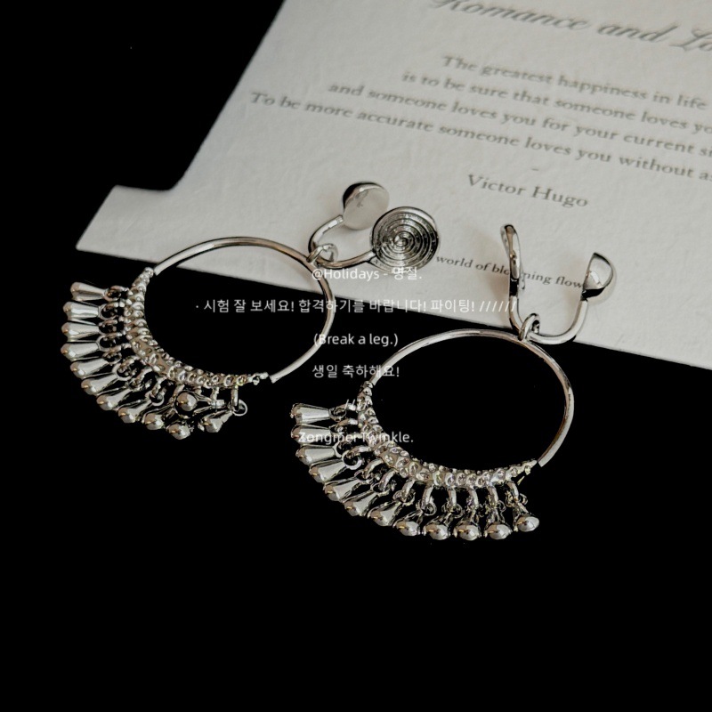 Waterfall Tassel Mosquito Coil Disc Ear Clip Without Pierced Ears for Women Holiday Style Silver Water Drop Long Earrings Ethnic Style Earrings for Women