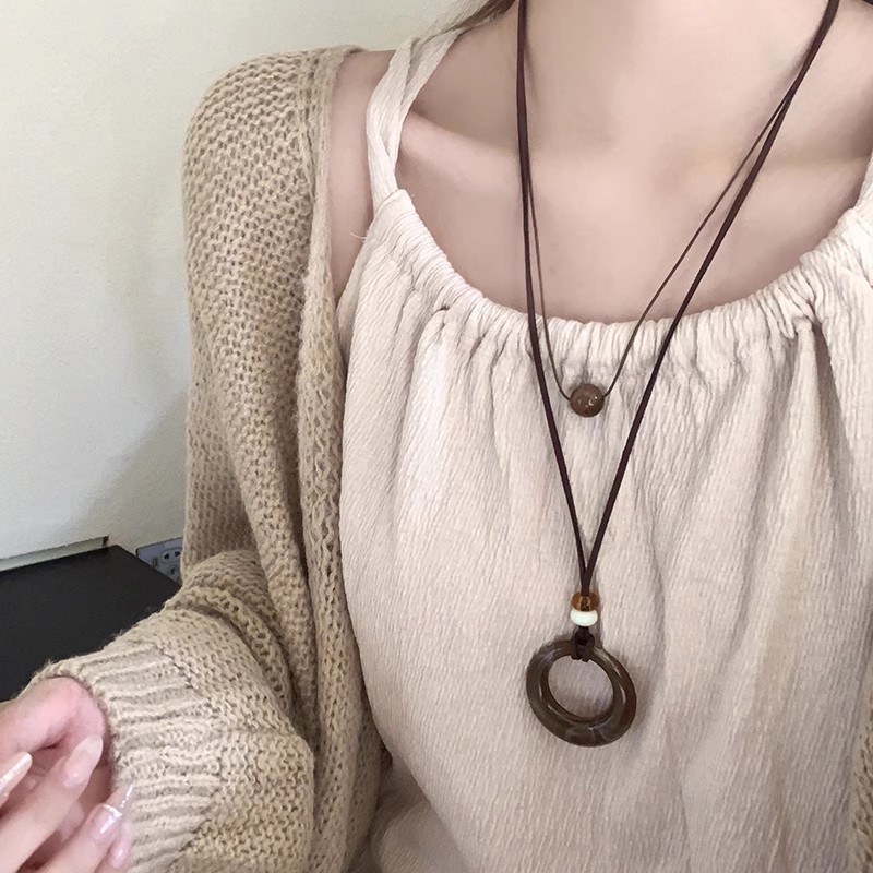 Ethnic Style Bohemian Retro Pendant Braided Rope Necklace Women's Long Sweater Chain Accessories Trendy