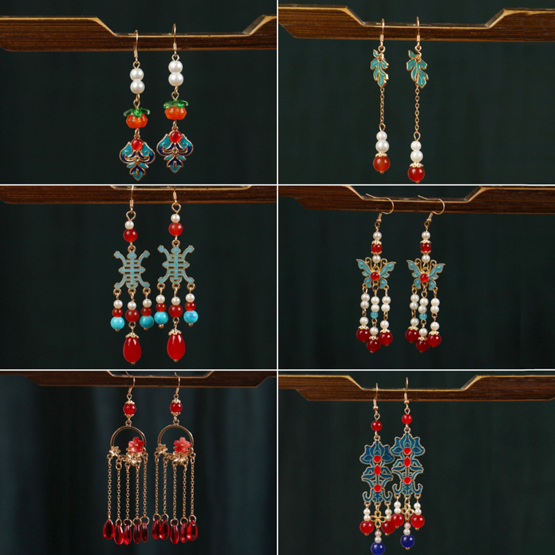 New Chinese-style Butterfly Water Drop Pearl Tassel Ear Hook Women's National Fashion Light Luxury Safe Buckle Ancient Clothes Cheongsam All-match Earrings