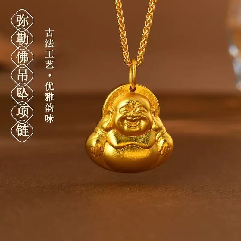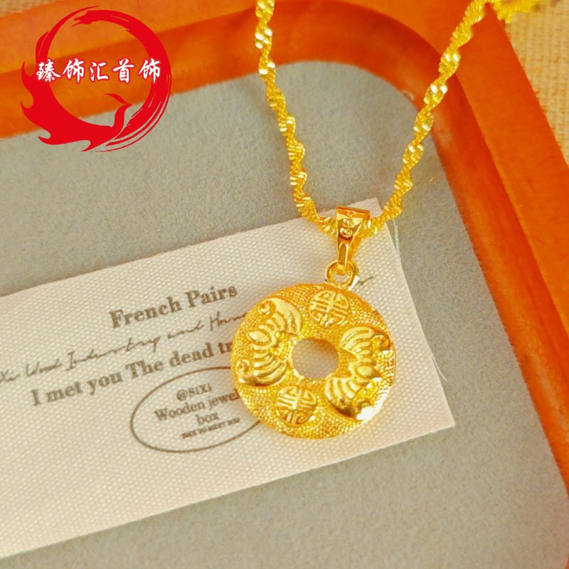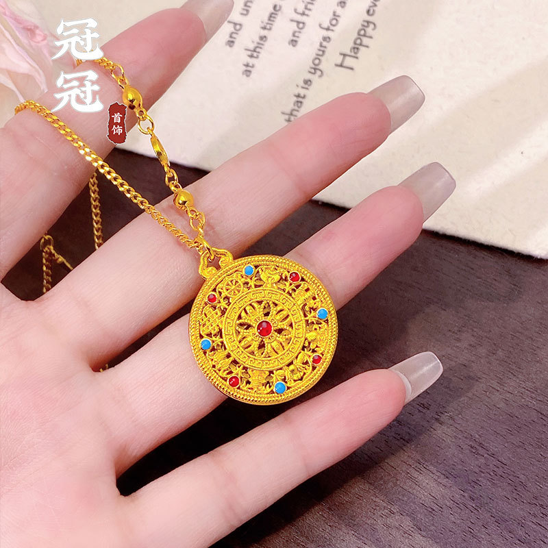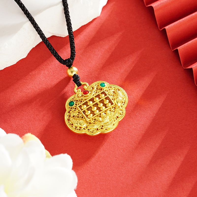 Vietnam Ancient Fasha Gold Abacus Ruyi Lock Necklace Micro-inlaid Hollow Vintage Pattern Stereo Pendant Design Sense Jewelry