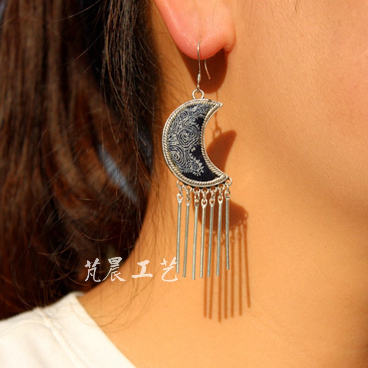 Imitation Miao Silver Earrings Minority Style Earrings Tourist Attractions Earrings Long Leaf Tassel Earrings