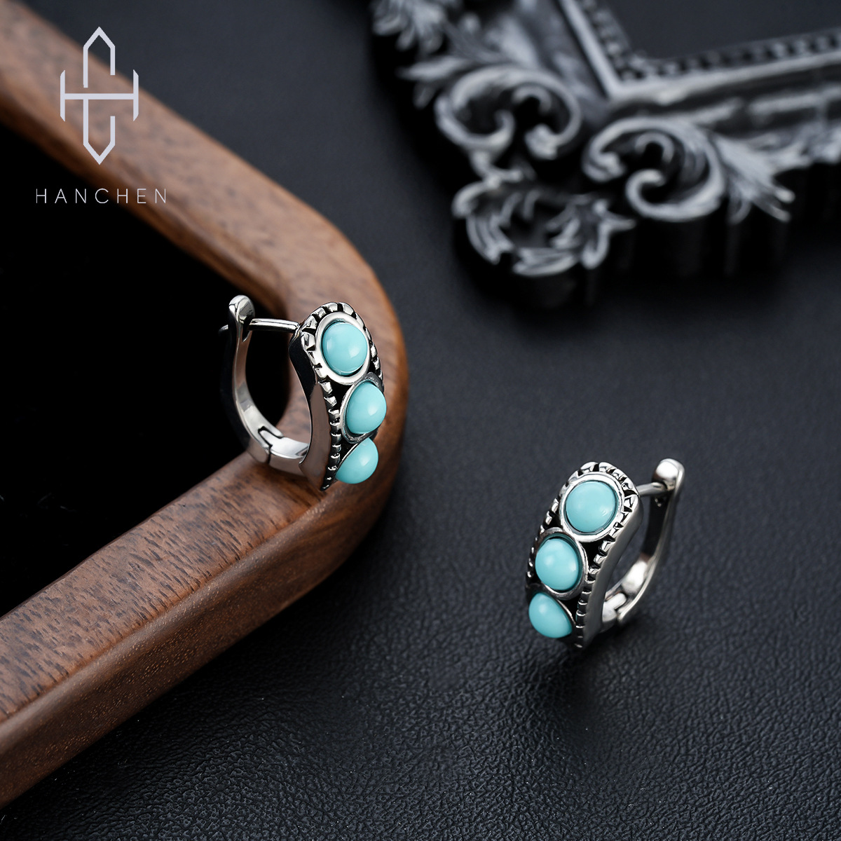 Chinese Style Dragon and Phoenix Starry Sky Meteor Shower Hoop Earrings with Ethnic Pattern Open-Ended Earrings