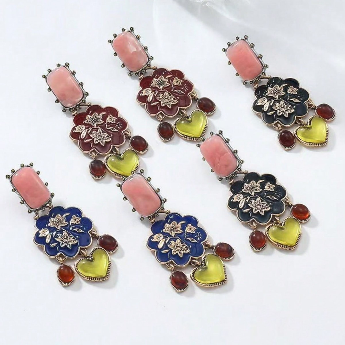 Za European and American Exaggerated Big-Name Floral Heart Pendant Earrings Multi-Layered Tassel Earrings Retro Accessible Luxury Ethnic Style Earrings