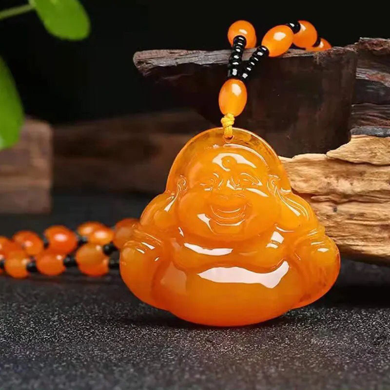 Imitation beeswax Maitreya Buddha carving pendant laughing Buddha long sweater chain women's chicken yellow necklace pendant wholesale