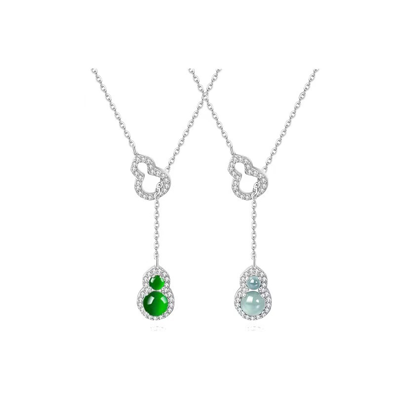 White Copper New Chinese Style Fu Lu Necklace for Women, Jadeite Fu Lu Pendant with Double Gourds, High-End Interlocking Clavicle Chain