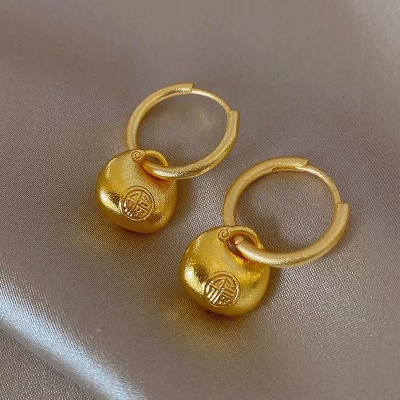 2025 new golden bag earrings women's light luxury exquisite high-end national style temperament Joker ear jewelry wholesale
