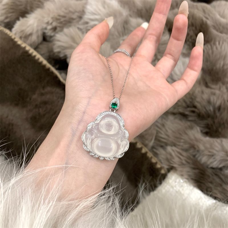 Xiaohongshu's Same Style Diamond-encrusted High-transparent Maitreya Buddha Necklace Women's Retro New Chinoiserie Niche High-end Clavicle Chain