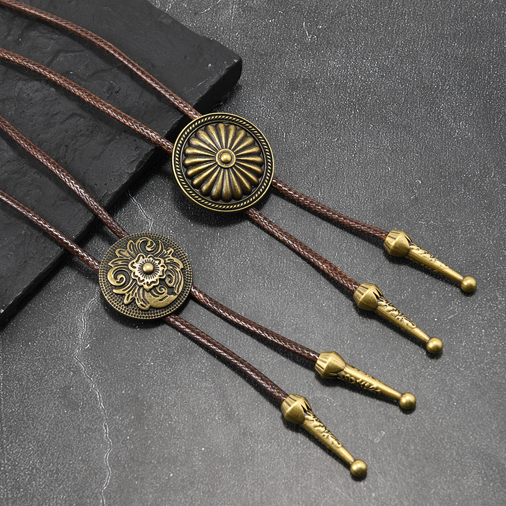 Cross-Border New Leather Wax Rope Necklace Tang Yicao Rain Round Flower Retro Bolo Collar Sweater Chain Men and Women Same Style Necklace