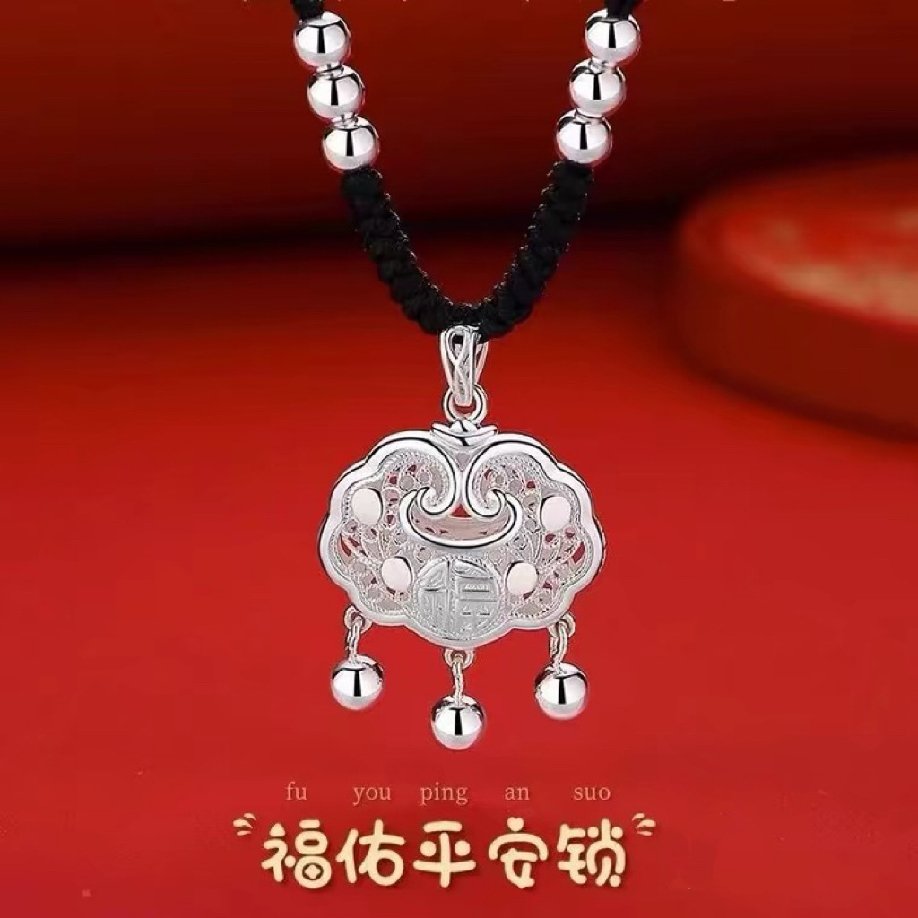 New Chinese Style [Big Collection] Necklace Chinese Style Niche Ins Safe Lock Student Explosions Woven Bell Pendant