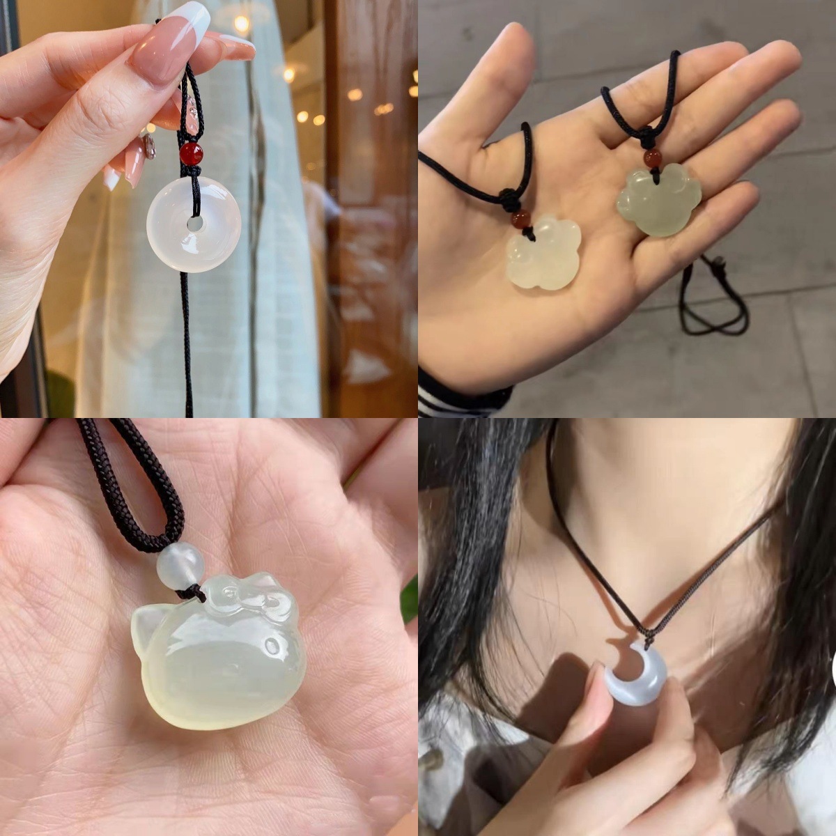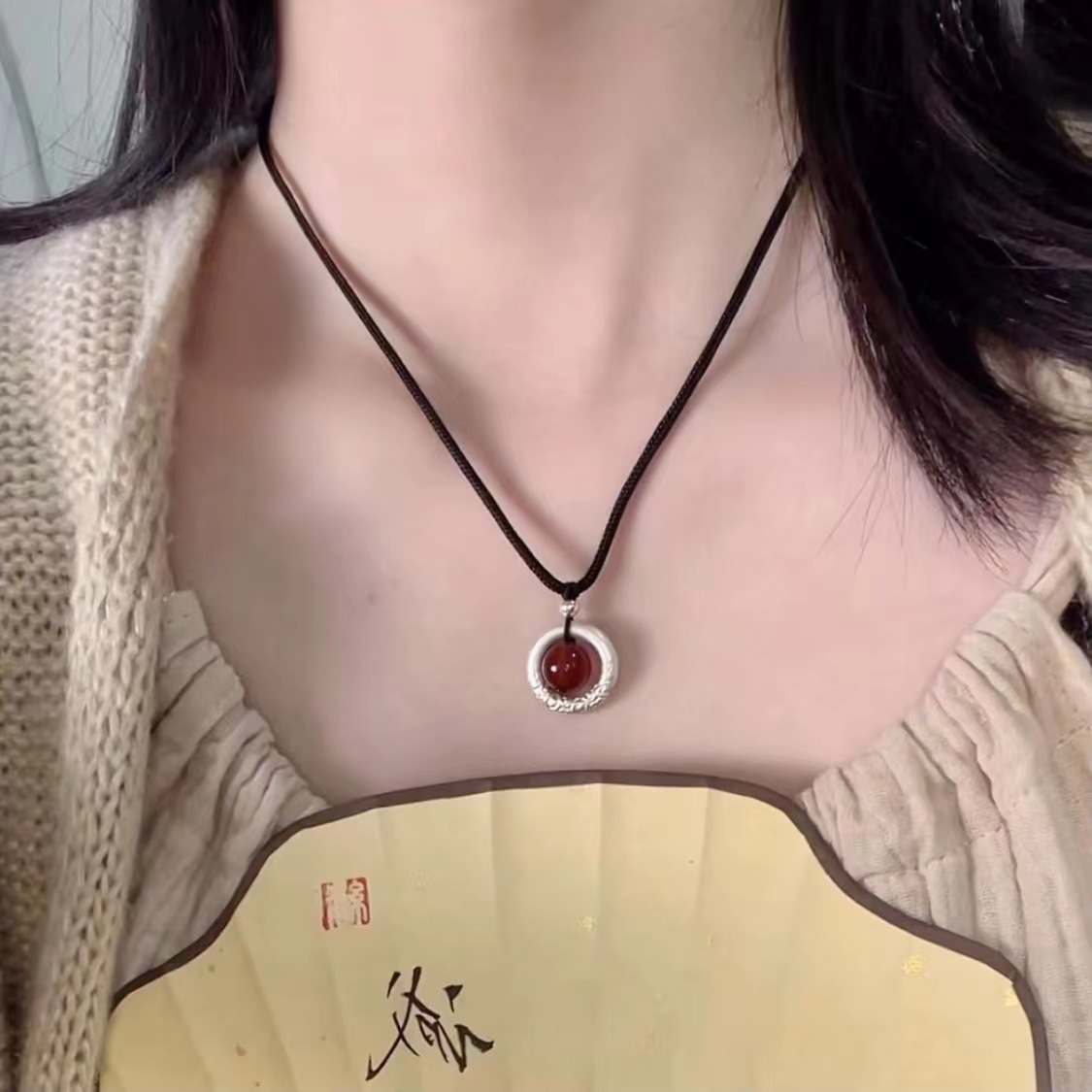 Couple's Zodiac Year Red Agate Necklace Female Acacia Bean Auspicious Cloud Circle Safety Buckle Hand-woven Clavicle Chain Necklace for Men