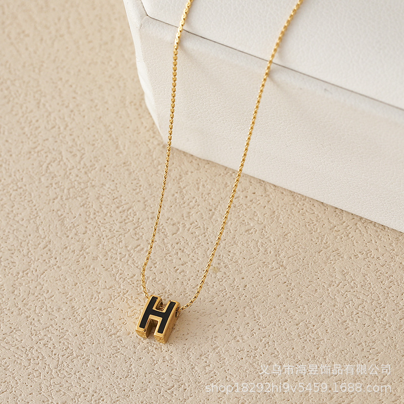 Cross-Border European and American Stainless Steel Shell Letter H Necklace for Women 18K Gold Simple Round Capital Letter Pendant