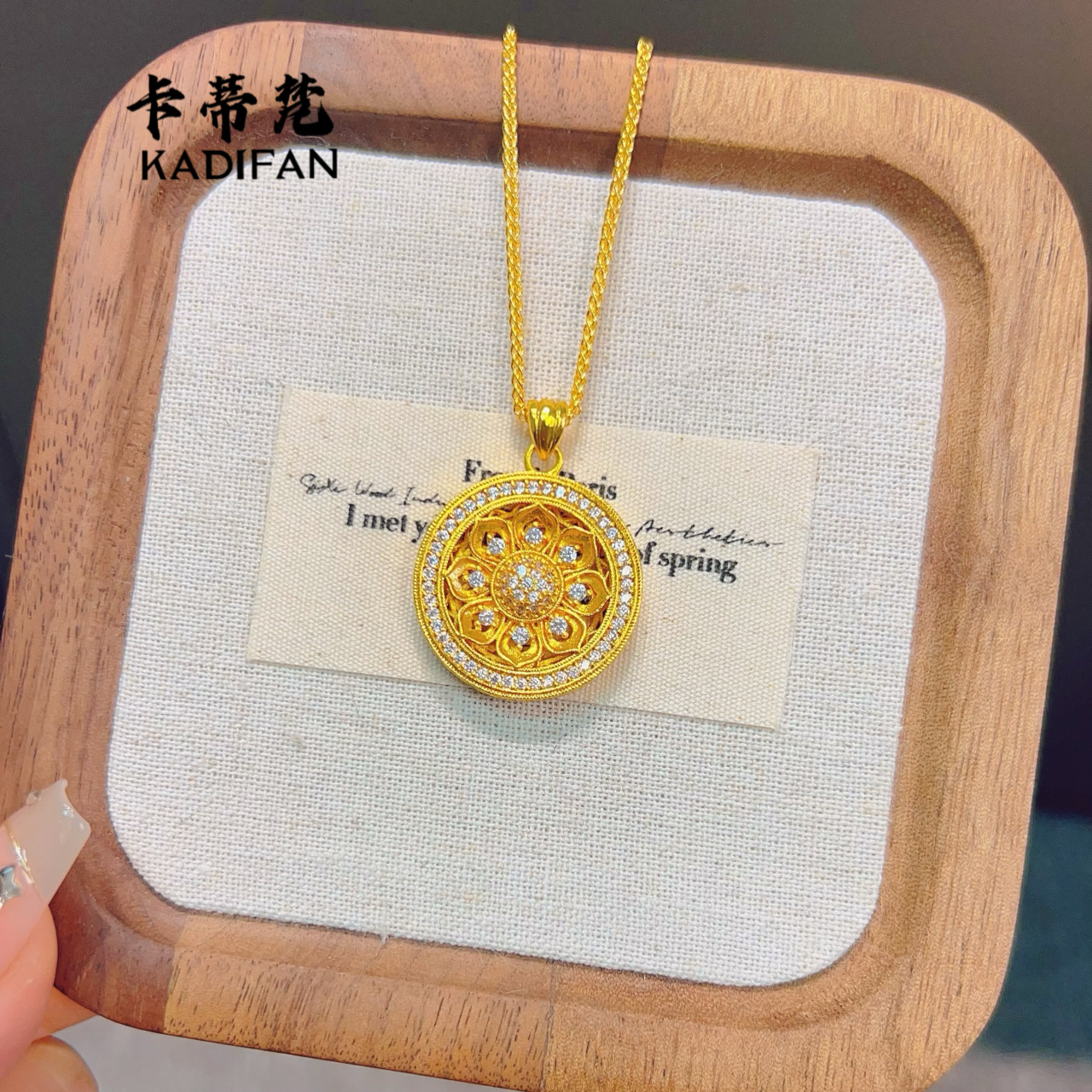 Gold shop with the same style of national rhyme inheritance step by step lotus sand gold pendant new diamond lotus compass necklace new Chinese style
