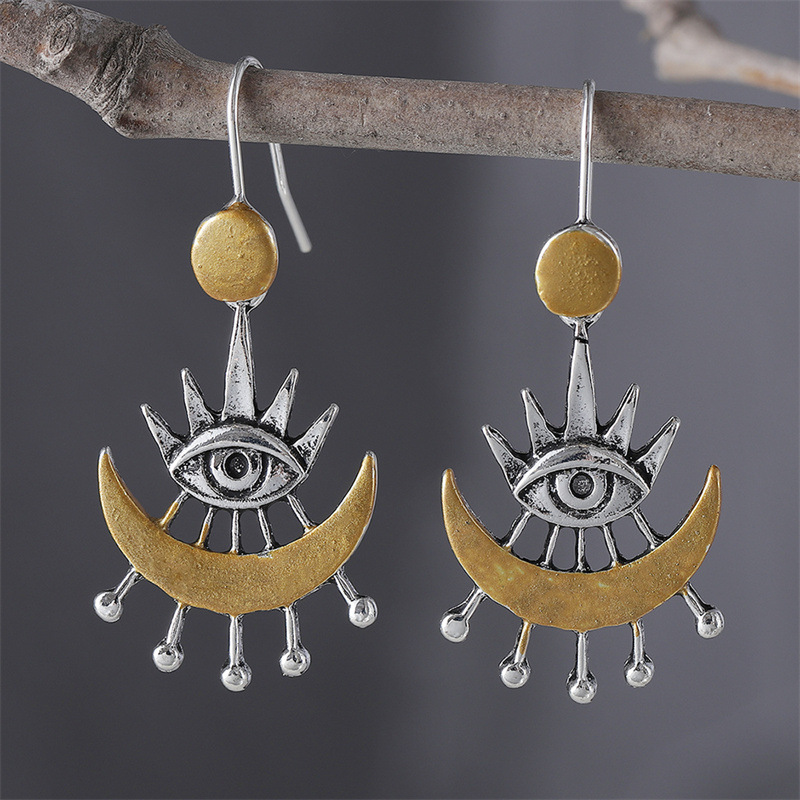 European and American Cross-border Retro Personalized Eye of Horus Moon Earrings Simple Creative Ethnic Alloy Pendant Earrings
